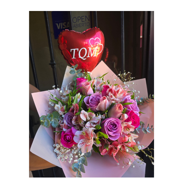 • globo de 9″ sin helio con  frase tqm  en vinil , tono del globo puede variar segun disponibilidad.